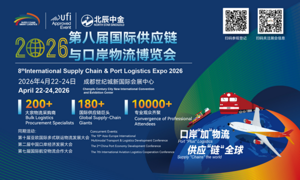 在此背景下,北辰中金将再度推出“一展三会”的标杆品牌活动:“一带一路”产业链供应链旗舰展——第八届国际供应链与口岸物流博览会(以下简称“口岸物流展”),同期还将举办三大国际会议:第十届亚欧国际多式联运物流发展大会、第七届航空物流合作论坛、第二届中国口岸经济发展大会。2026年4月在成都应势启航!