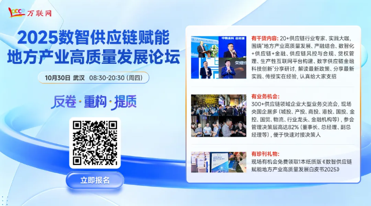 当前,湖北正在加快建成中部地区崛起重要战略支点。在“十五五”新征程上,湖北正以供应链思维重塑发展模式,以数智技术赋能产业升级,在加快建成中部地区崛起重要战略支点的道路上稳步前行。为进一步助力推动湖北供应链创新发展,万联网将于10月30日在武汉举办“2025数智供应链赋能地方产业高质量发展论坛”,面向全国邀请来自供应链服务圈内的龙头企业、供应链公司、产业投资公司等300+人参与。