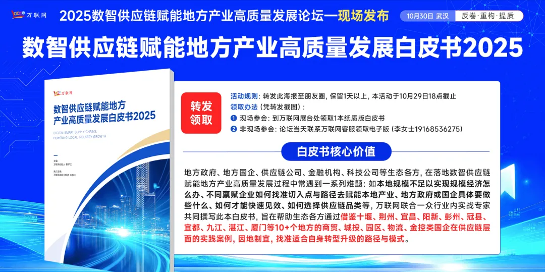 如果您希望获得此本白皮书或与上述专家、案例企业深度交流,欢迎您10月30日来武汉参加由万联网主办的2025数智供应链赋能地方产业高质量发展论坛。