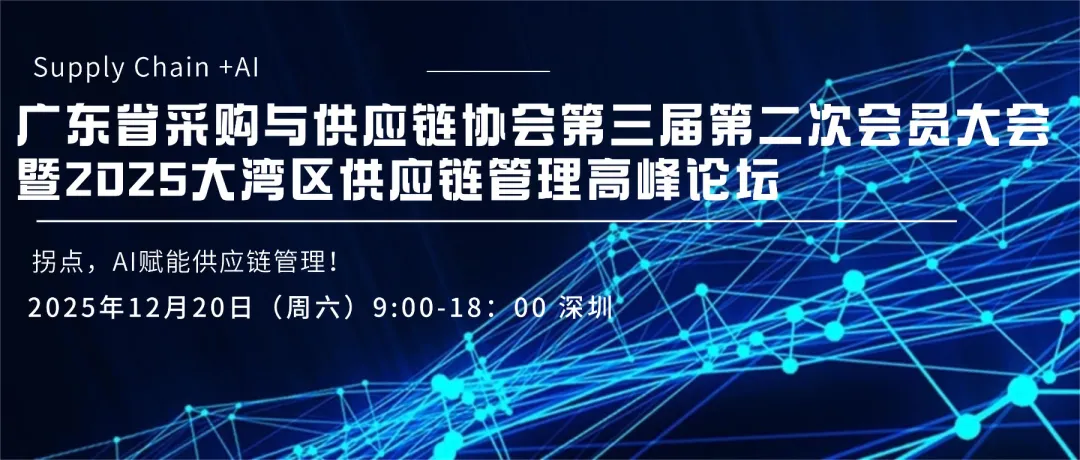 在此背景下,广东省采购与供应链协会第三届第二次会员大会以“AI赋能供应链管理”为主题,于2025年12月20日于深圳举行。同期联合PSCC采购与供应链专家会共同举办2025大湾区供应链管理高峰论坛。共同探索人工智能技术如何为供应链管理注入新动能,推动大湾区建设更具韧性、更智能化的供应链体系。