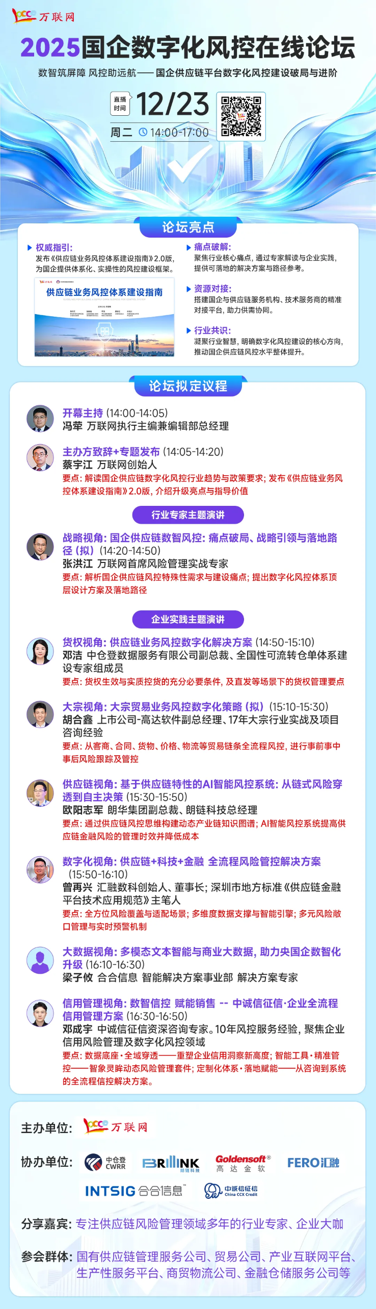 供应链人不容错过!2025国企数字化风控在线论坛,将于12月23日14点准时在万联网视频号开播!