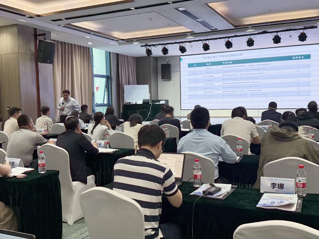 W老师随即带大家完成了一个产品化成熟度量表的自我诊断——从客户价值量化、客户续约率、定价体系、金融产品嵌入、数字化支撑等8个维度打分。结果不出所料:大多数学员所在企业处于第一级到第二级之间,也就是资产经营型企业(卖资产不卖方案)、解决方案型企业(卖方案不卖产品),有一定基础,但产品化刚刚起步。